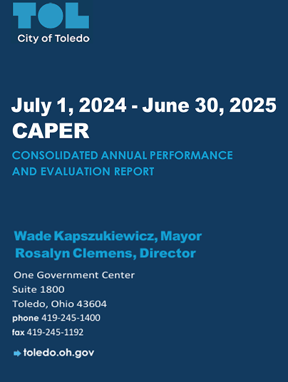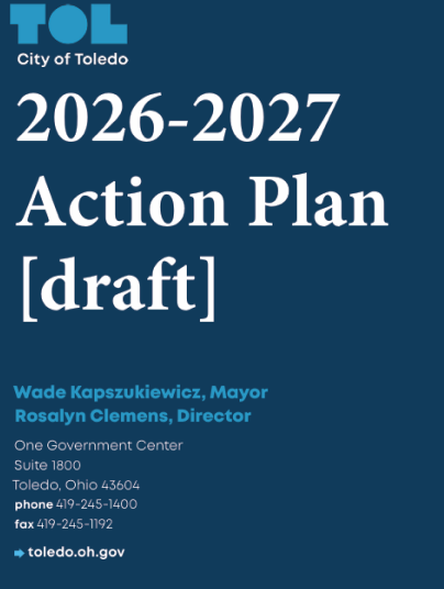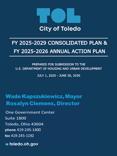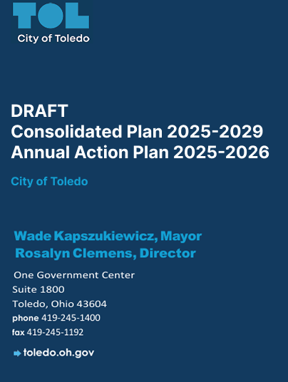 The Draft 2025-2029 Five-Year Consolidated Plan, Draft 2025-2026 One-Year Action Plan, and Draft Analysis of Impediments will be available for public review starting Wednesday, April 23, 2025. The City of Toledo welcomes public comments in writing from Wednesday, April 23 2025, through Friday, May 23, 2025. Your feedback is crucial in the shaping of the final plans.